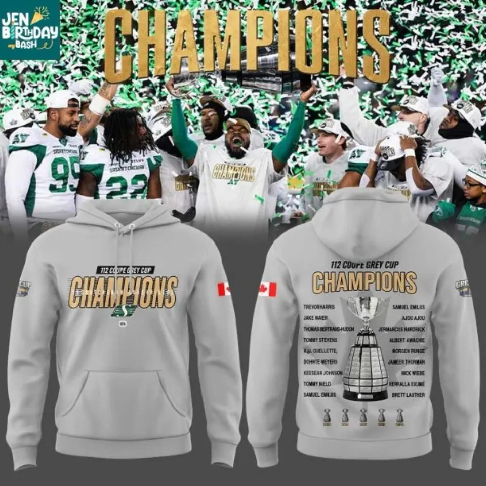 Shop for attractive Saskatchewan Roughriders 112th Grey Cup Champs 2025 Players Hoodie 3D or see more 3D Hoodies products on https://printblur.com right now!