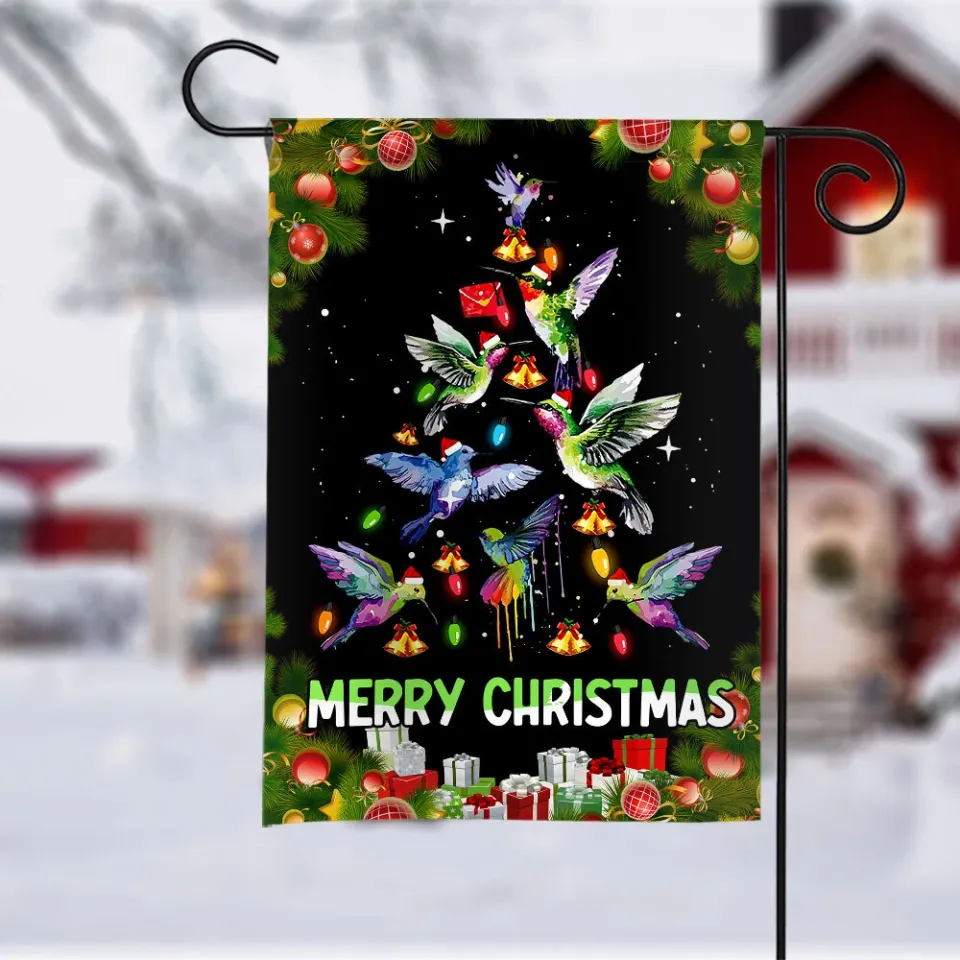 You're taking a peek at the product Hummingbird Merry Christmas Flag, Hummingbird Christmas Tree Lights Flag Gift For belong theme Garden Flags at Printblur