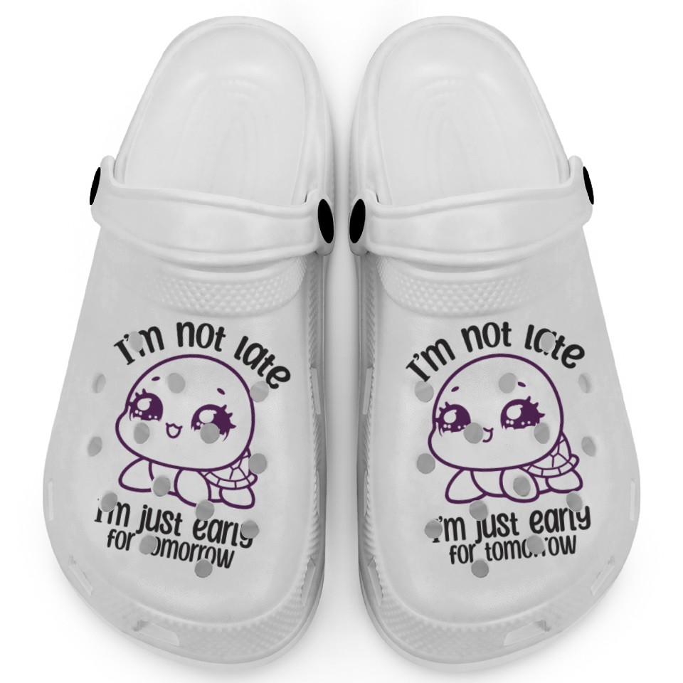 I'm Not Late I'm Just Early For Tomorrow Turtle Clogs