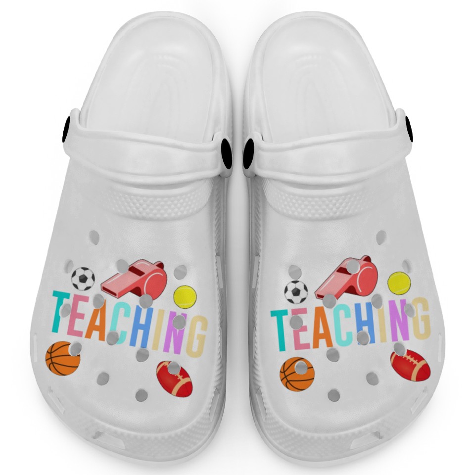 You are shopping for a stunning and trendy product Inspiring Physical Education Teacher Design for PE Clogs For Kids WHITE belong theme Clogs at Printblur