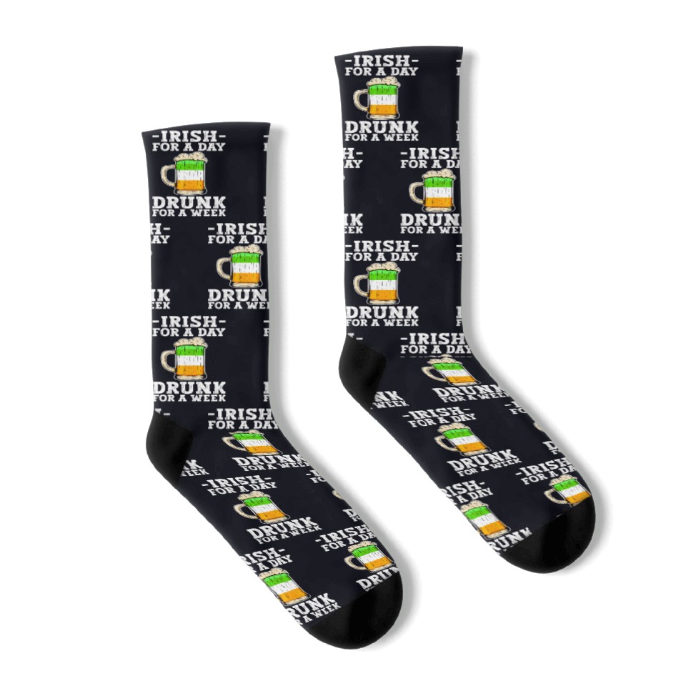 The item hot trend you're looking at is Irish For A Day Drunk For A Week - St Patricks Day Socks For Black belong theme Socks at Printblur