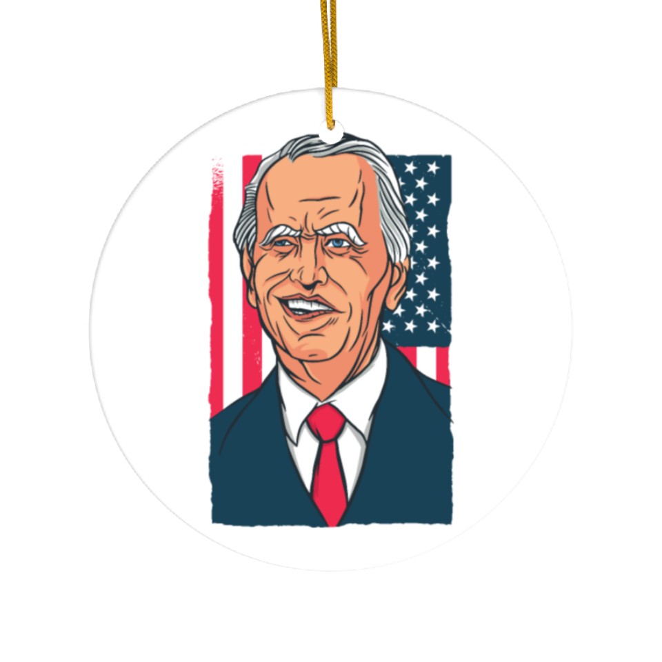 You are seeing a unique and impressive product Joe Biden Cartoon Laughs with US Flag Ceramic Ornaments For WHITE belong theme Ceramic Ornaments at Printblur