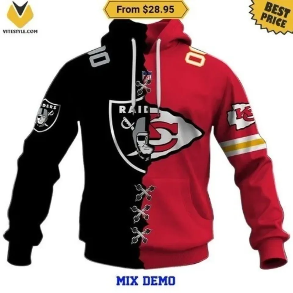 Buy eye-catching Kan-sas Raiders Mix 3D Hoodie Gifts for Fans or see more 3D Hoodies products at Printblur shop now to explore many surprises from our shop!
