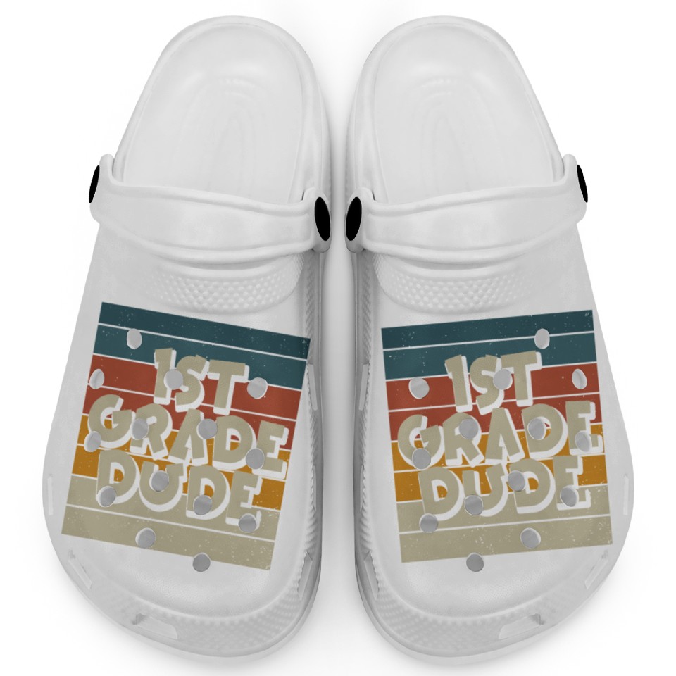 You are viewing one of the trendiest products Kindergarten Teacher Funny Student 1st Graduation Clogs For Kids WHITE belong theme Clogs at Printblur