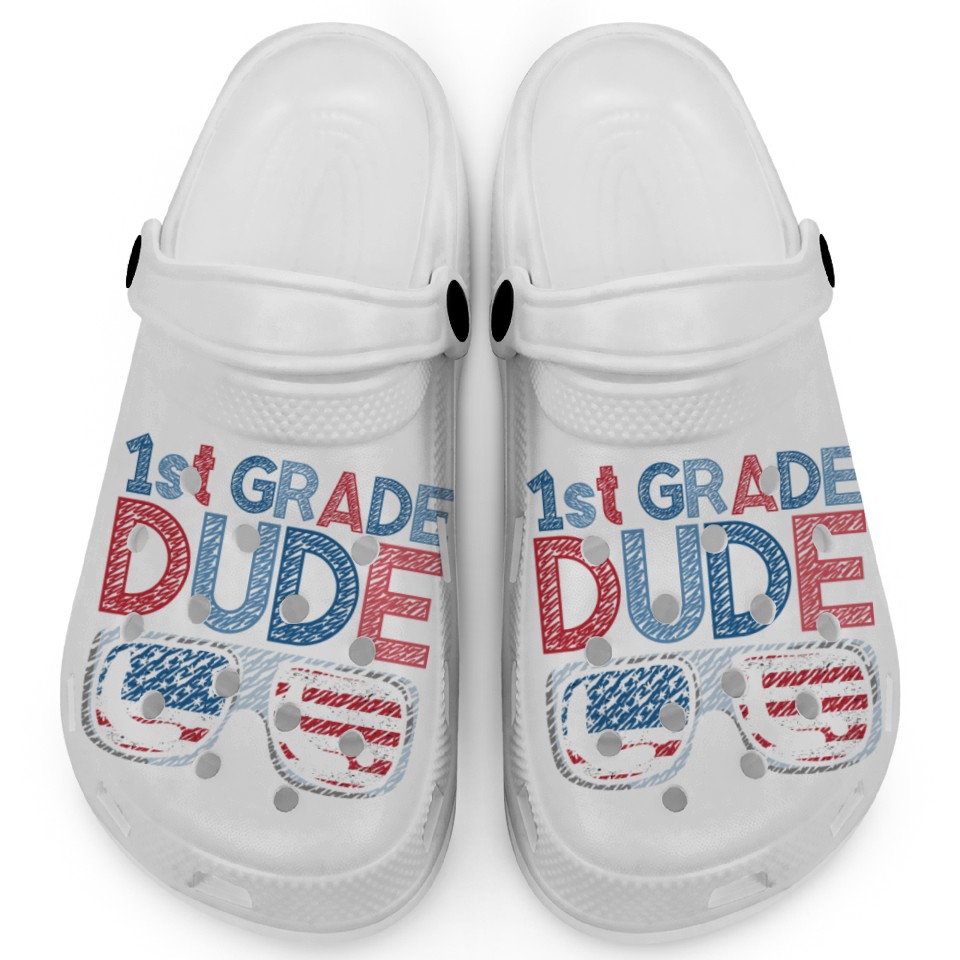 You are seeing a unique and impressive product Kindergarten Teacher Funny Student 1st Graduation Clogs For Kids WHITE belong theme Clogs at Printblur