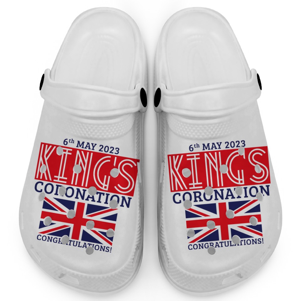 You're looking at the eye-catching product King’s Coronation, 6th May 2023 Congratulations, R Clogs For Kids WHITE belong theme Clogs at Printblur