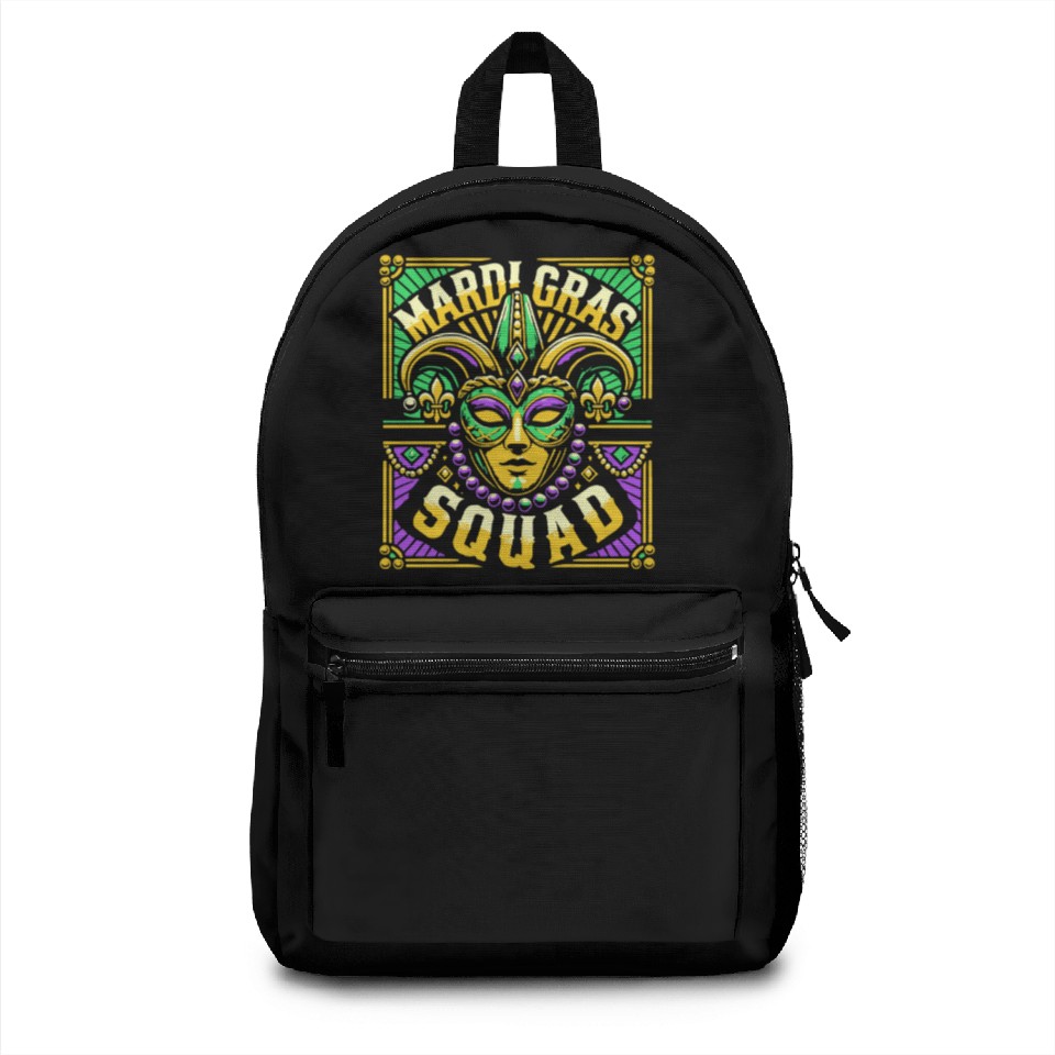 The item hot trend you're looking at is Mardi Gras Squad Mask Beads Celebration Backpacks For Black belong theme Backpacks at Printblur