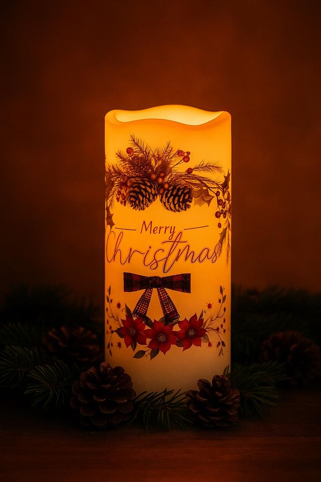 Own fascinating Merry Christmas LED Candle: Pinecones, Poinsettias & Plaid Bow or see more Led Candles products now from Printblur shop to enjoy your shopping time!