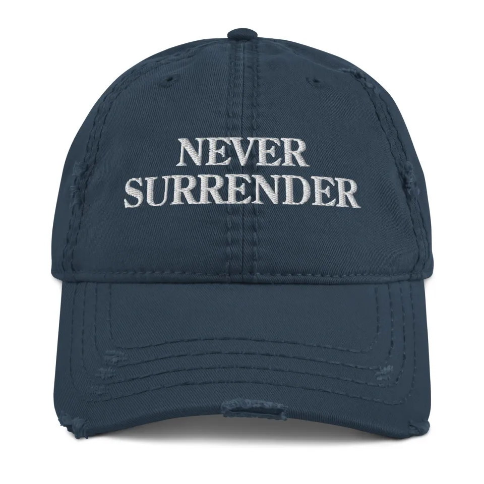 NEVER SURRENDER Distressed Dad Cap USA American Flag Embroidered Cap