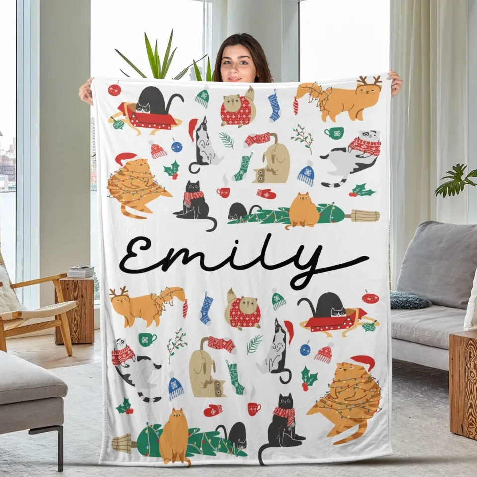 Own fascinating Personalized Christmas Cat Blanket, Cute Cats Blanket, Pets Blankets, Christmas or see more Fleece Blankets products now from Printblur shop to enjoy your shopping time!