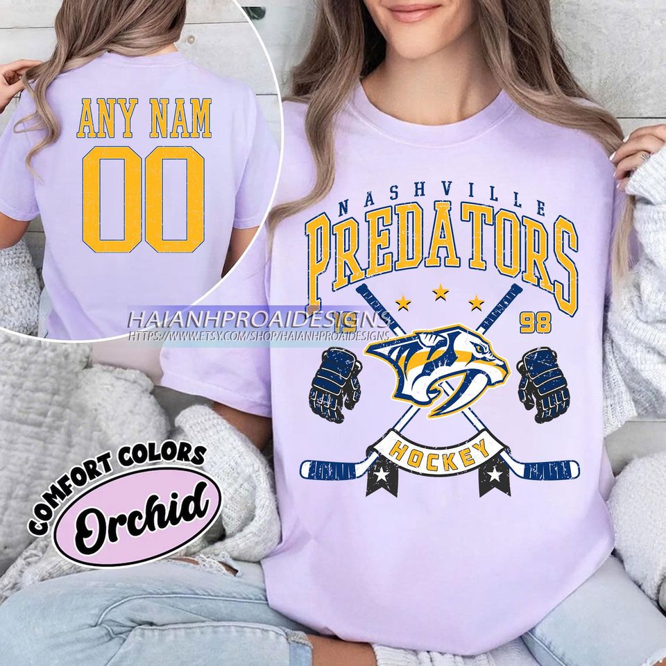 Buy stunning Personalized Comfort Colors Nashville Predators T-Shirt | Custom Number | Retro Team Shirt or see more Double Sided T-Shirts products at Printblur right now to receive many amazing discounts!
