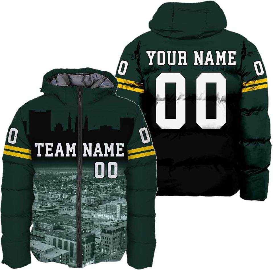 Personalized Green Bay Football Team Packers Men's Hooded Puffer Jacket