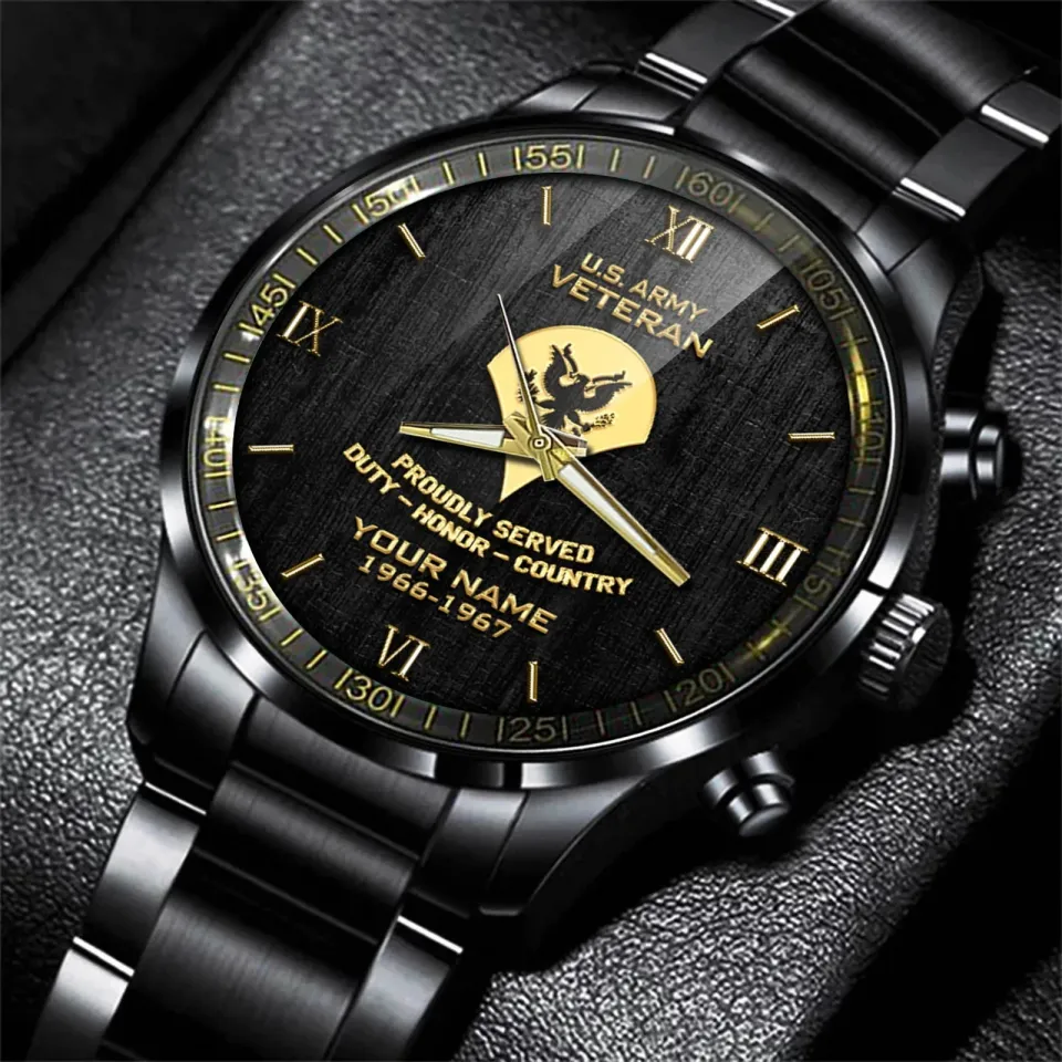 Own fascinating Personalized US Army Veteran Black Stainless Steel Watch For Men or see more Calendar Steel Band Watch products now from Printblur shop to enjoy your shopping time!