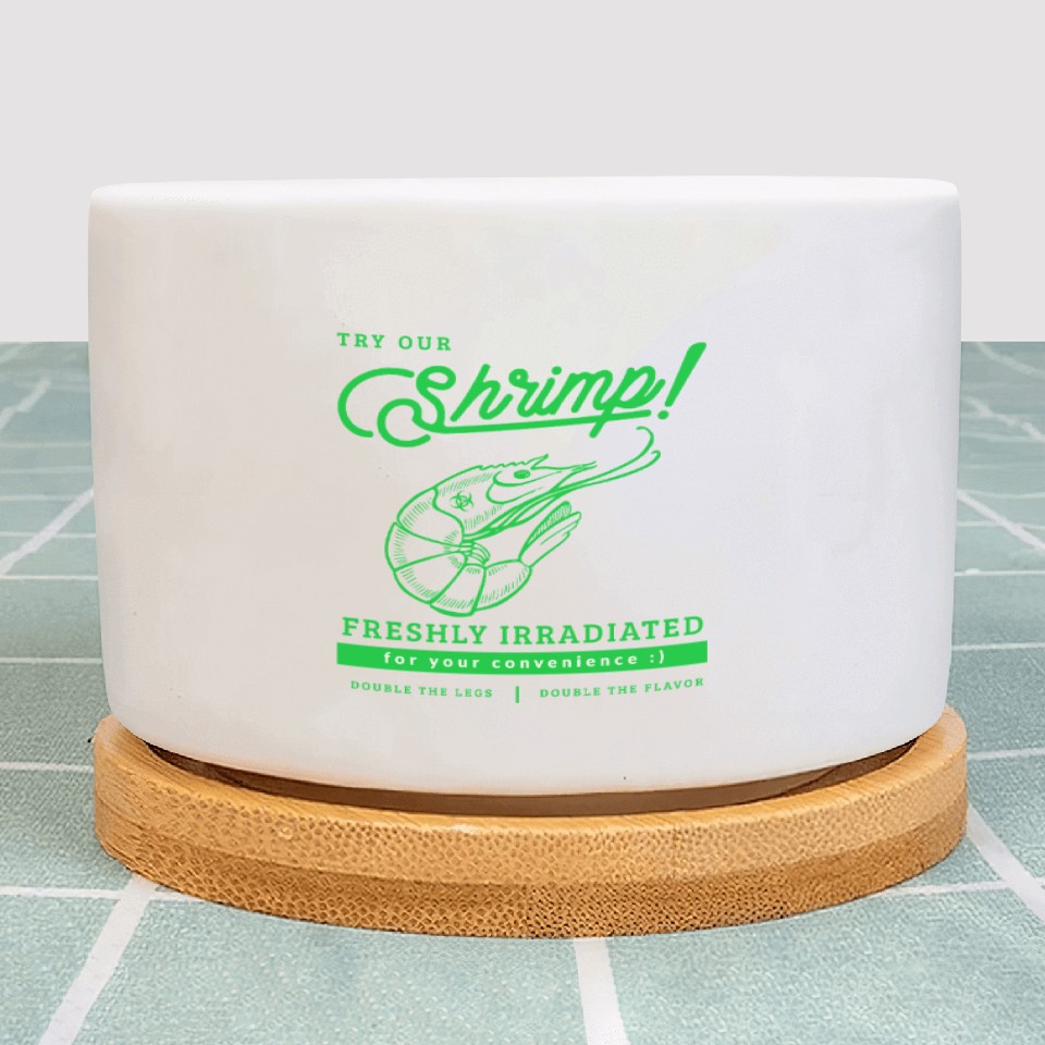 You are shopping for a stunning and trendy product Radioactive Shrimp Retro Parody Plant Pots For WHITE belong theme Plant Pots at Printblur
