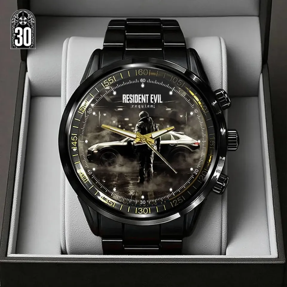 Shop for attractive Resident Evil Requiem x Scott Kennedy Black Stainless Steel Watch or see more Calendar Steel Band Watch products on https://printblur.com right now!