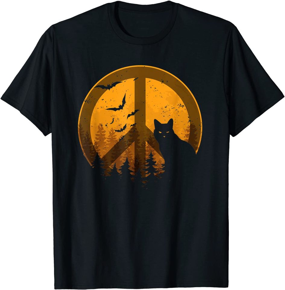 Shop for attractive Scary Halloween Black Cat Peace Sign Creepy Orange Fall T Shirt or see more T-Shirts products on https://printblur.com right now!