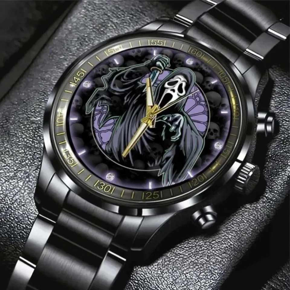 Buy eye-catching Scream x Ghostface Black Stainless Steel Watch or see more Calendar Steel Band Watch products at Printblur shop now to explore many surprises from our shop!