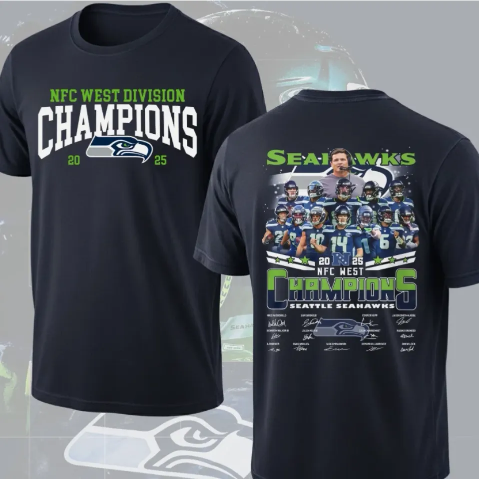 Buy eye-catching Seattle 2025 West Division Champions Signature TShirt For Fan or see more 3D T Shirts products at Printblur shop now to explore many surprises from our shop!