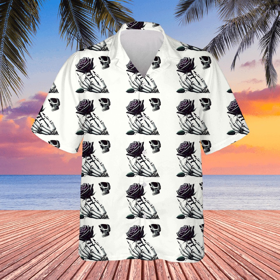 Shop for attractive Skeleton Hand Holding a Poisonous Rose Hawaiians or see more Hawaiians products on https://printblur.com right now!