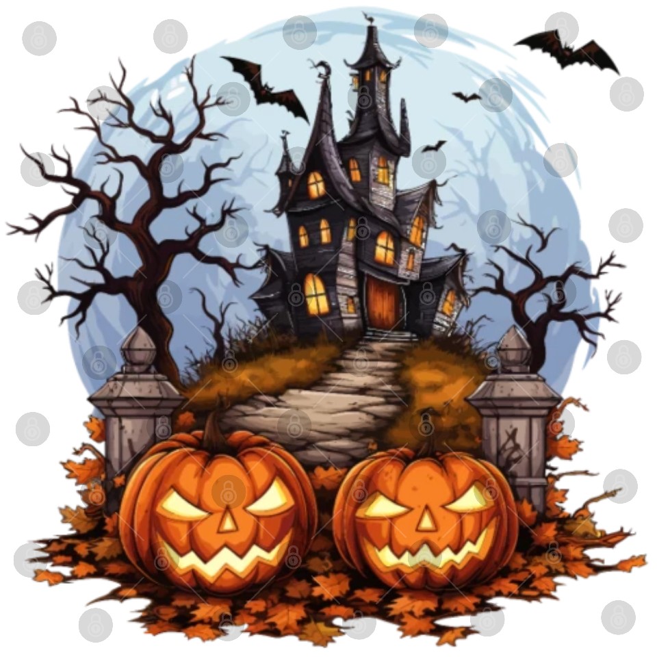 You're looking at the eye-catching product Spooky Haunted House Halloween Pumpkin Bat Digital Files For WHITE belong theme Digital Files at Printblur