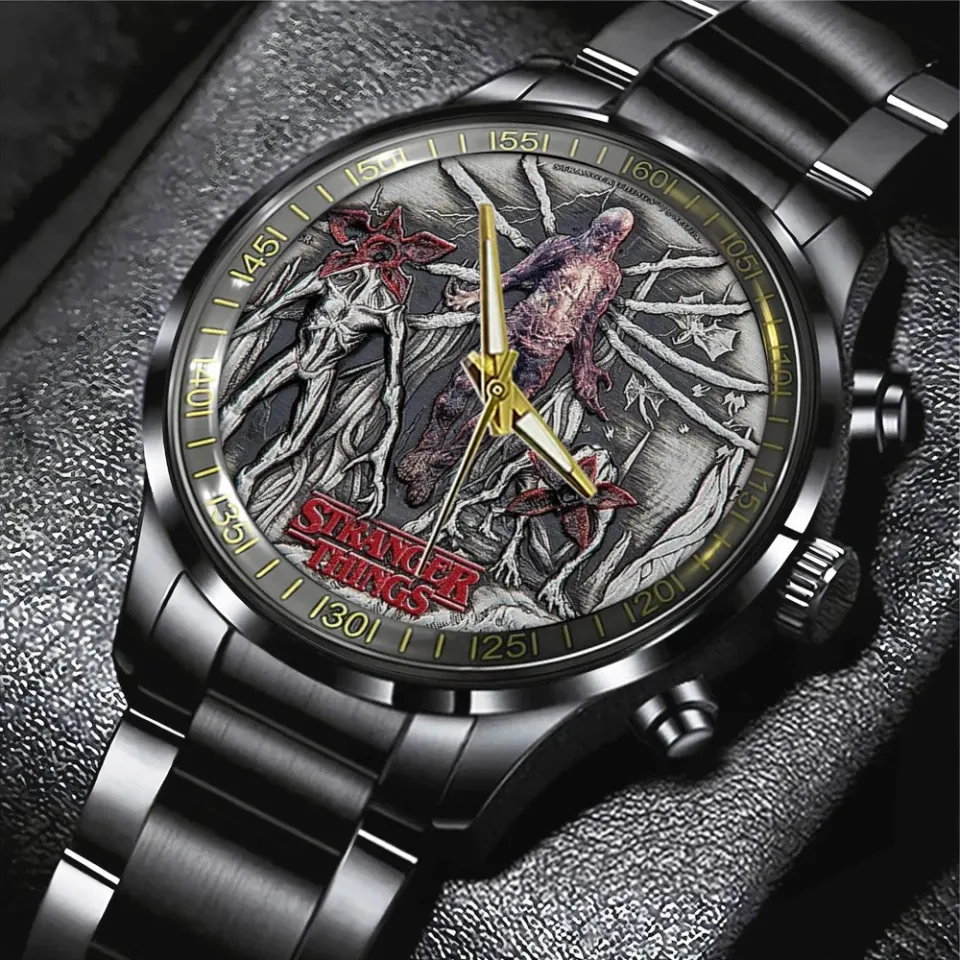 The item hot trend you're looking at is Stran*ger Things Black Stainless Steel Watch For belong theme Calendar Steel Band Watch at Printblur