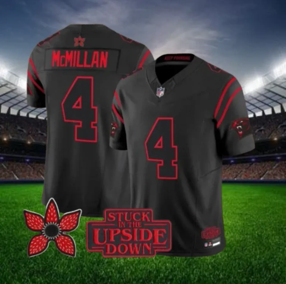 You're looking at the eye-catching product Tetairoa McMillan #4 Panthers Black Stranger Things Jersey For Unisex belong theme at Printblur