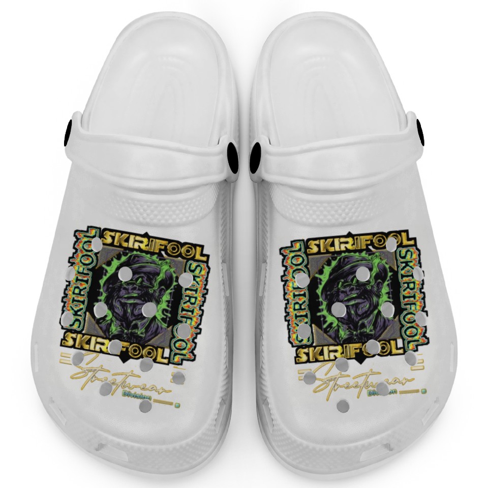 You are seeing a unique and impressive product The GoRilla In Me Boss Skirifool design Clogs For Kids WHITE belong theme Clogs at Printblur