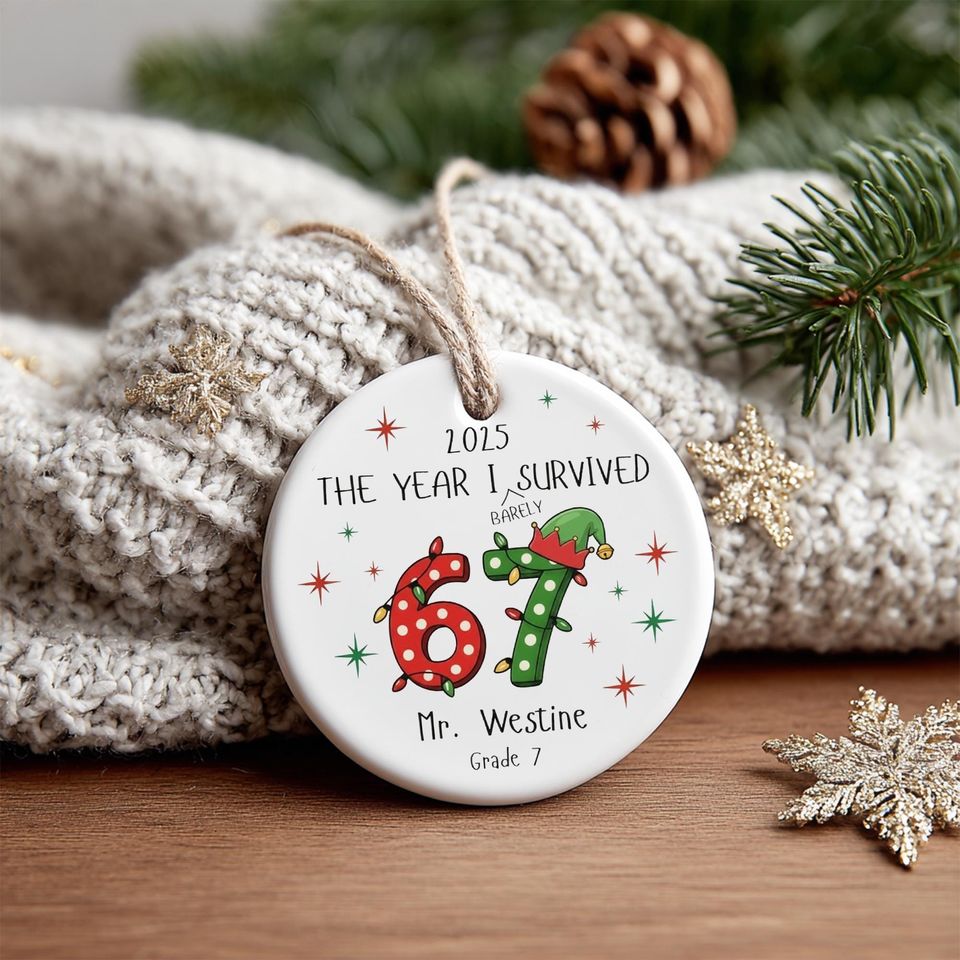 You are viewing an exclusive and elegant product The Year I Barely Survived 67 Ornament, Custom Teacher Christmas Ornament, Personalized School Keepsake, Printed One Side For belong theme Ceramic Ornaments at Printblur