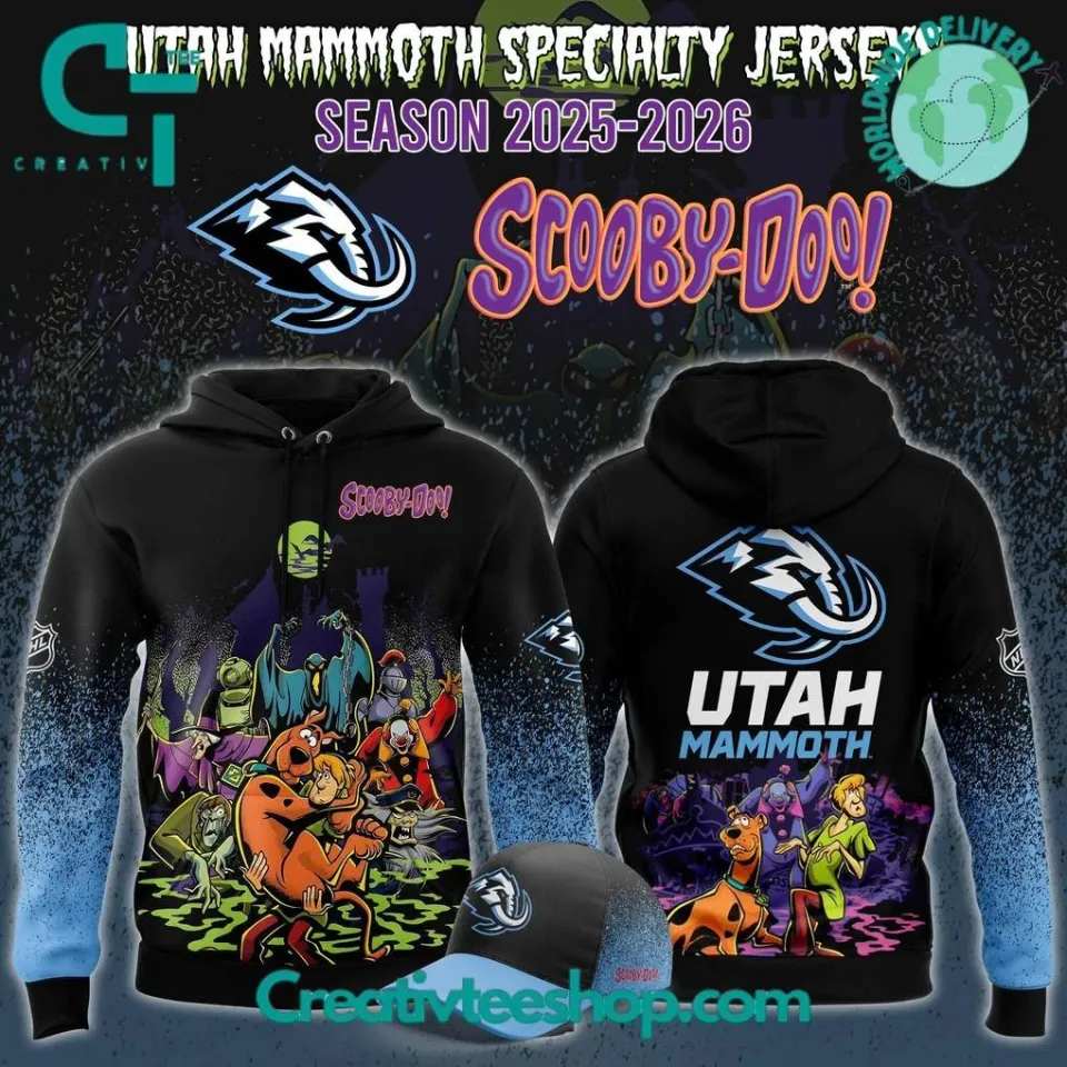 Own fascinating Utah Mammoth x ScooByDoo Night 2025 Special 3D Hoodie or see more 3D Hoodies products now from Printblur shop to enjoy your shopping time!