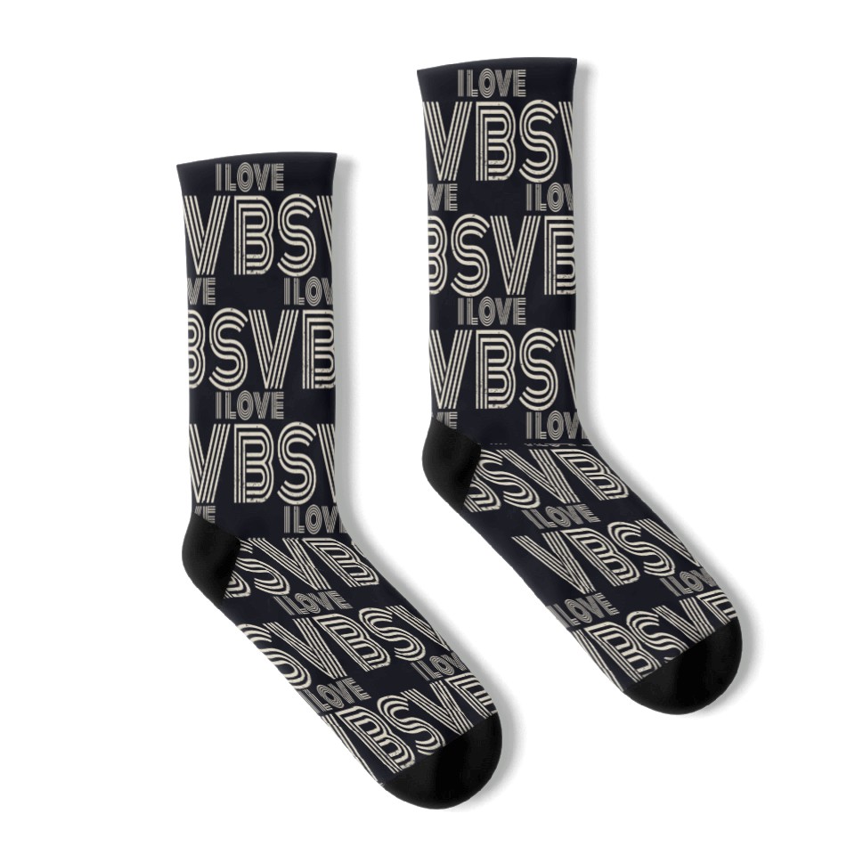 The item hot trend you're looking at is VBS Crew Summer Camp Vacation Teacher Student Socks For Black belong theme Socks at Printblur