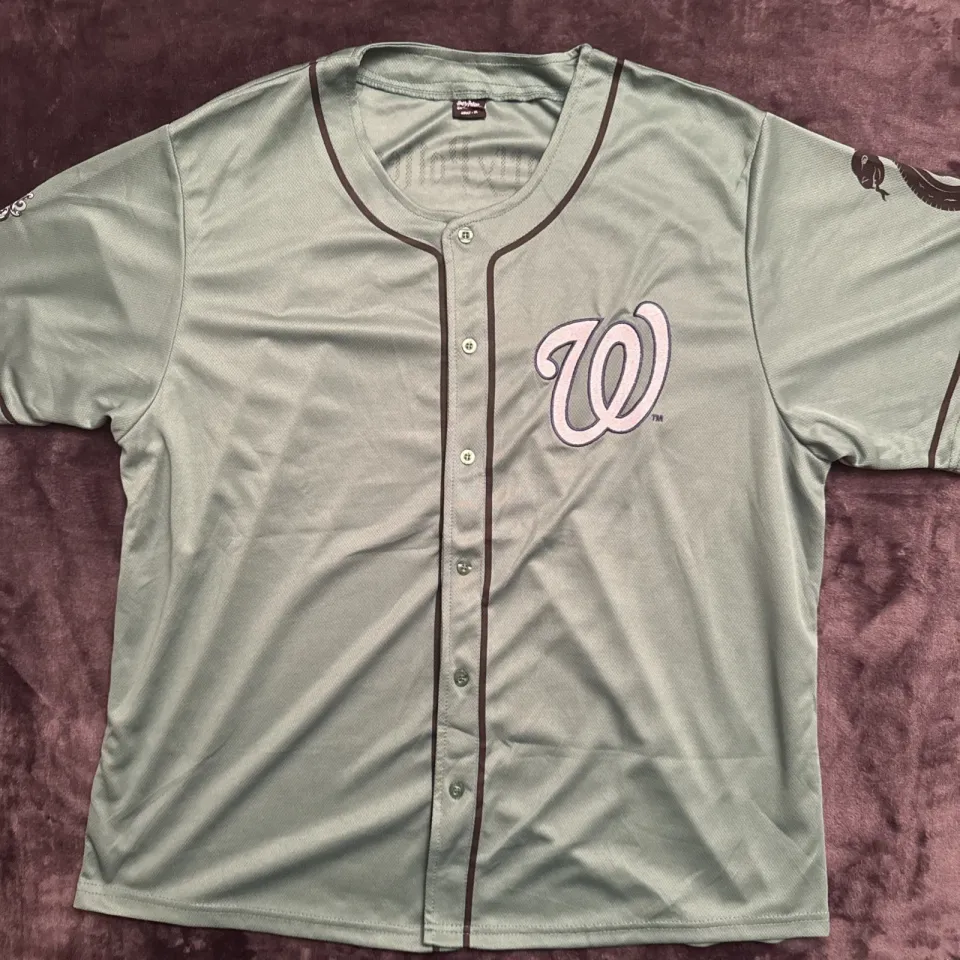 You're looking at the eye-catching product Washington Nationals 2024 Harry Potter Jersey SGA Slytherin Hogwarts For Men belong theme Baseball Jerseys at Printblur
