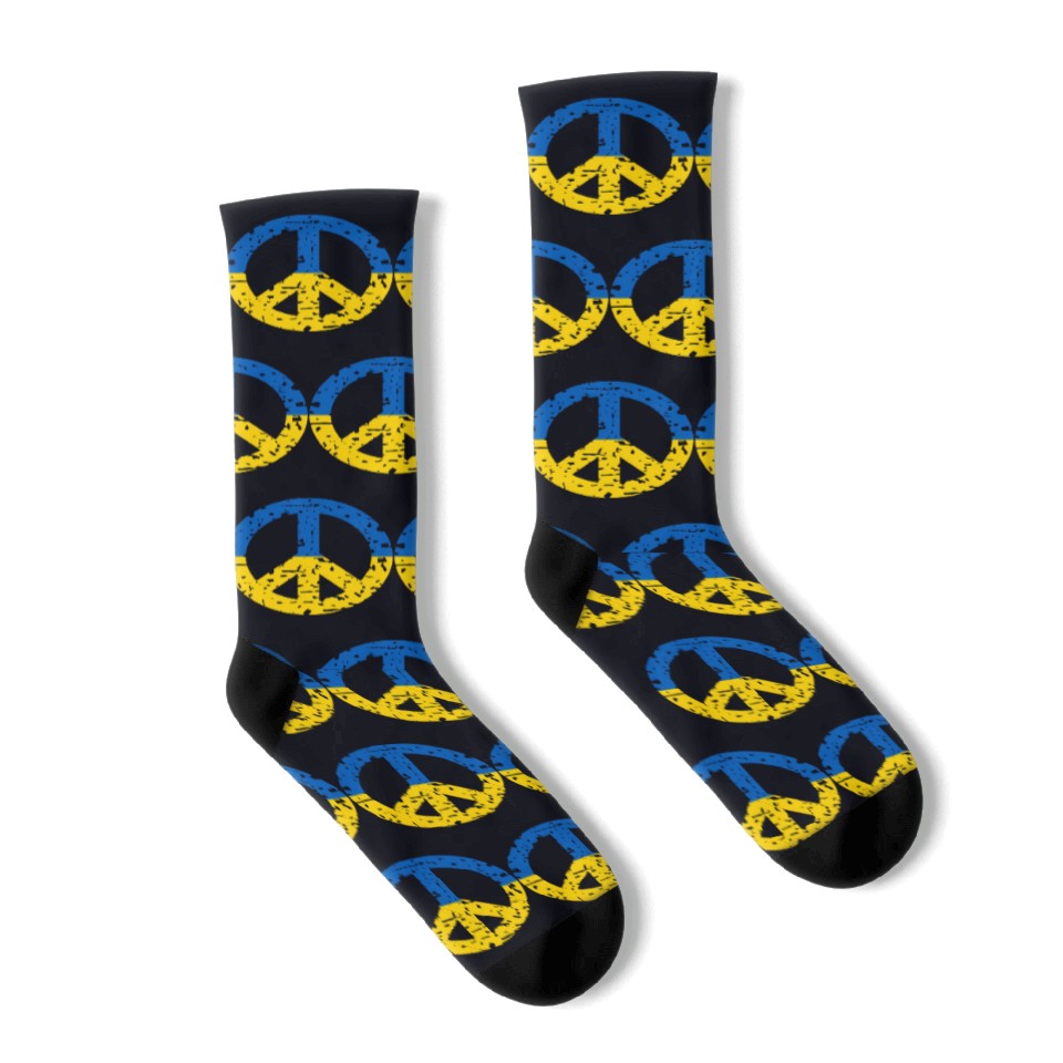 You are viewing an exclusive and elegant product Ukraine Peace Sign Ukrainian Flag Colors Socks For Black belong theme Socks at Printblur
