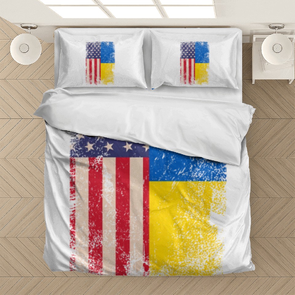 You're taking a peek at the product Ukrainian American Flag Ukraine Usa Roots Bedding Sets For WHITE belong theme Bedding Sets at Printblur