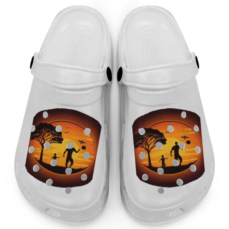 You are seeing a unique and impressive product Ultimate Frisbee Fans Father and Son Playing Clogs For Kids WHITE belong theme Clogs at Printblur