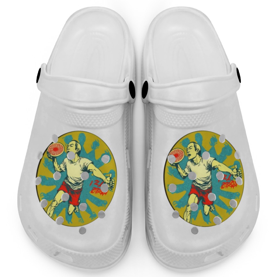 You're looking at the eye-catching product Ultimate Frisbee Retirement Appreciation Pop Art Clogs For Kids WHITE belong theme Clogs at Printblur