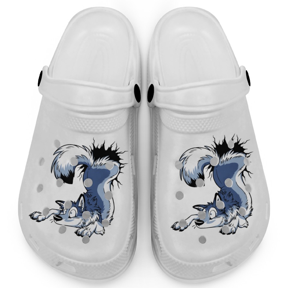 The item hot trend you're looking at is UN-STUCK Blue Husky Clogs For Kids WHITE belong theme Clogs at Printblur