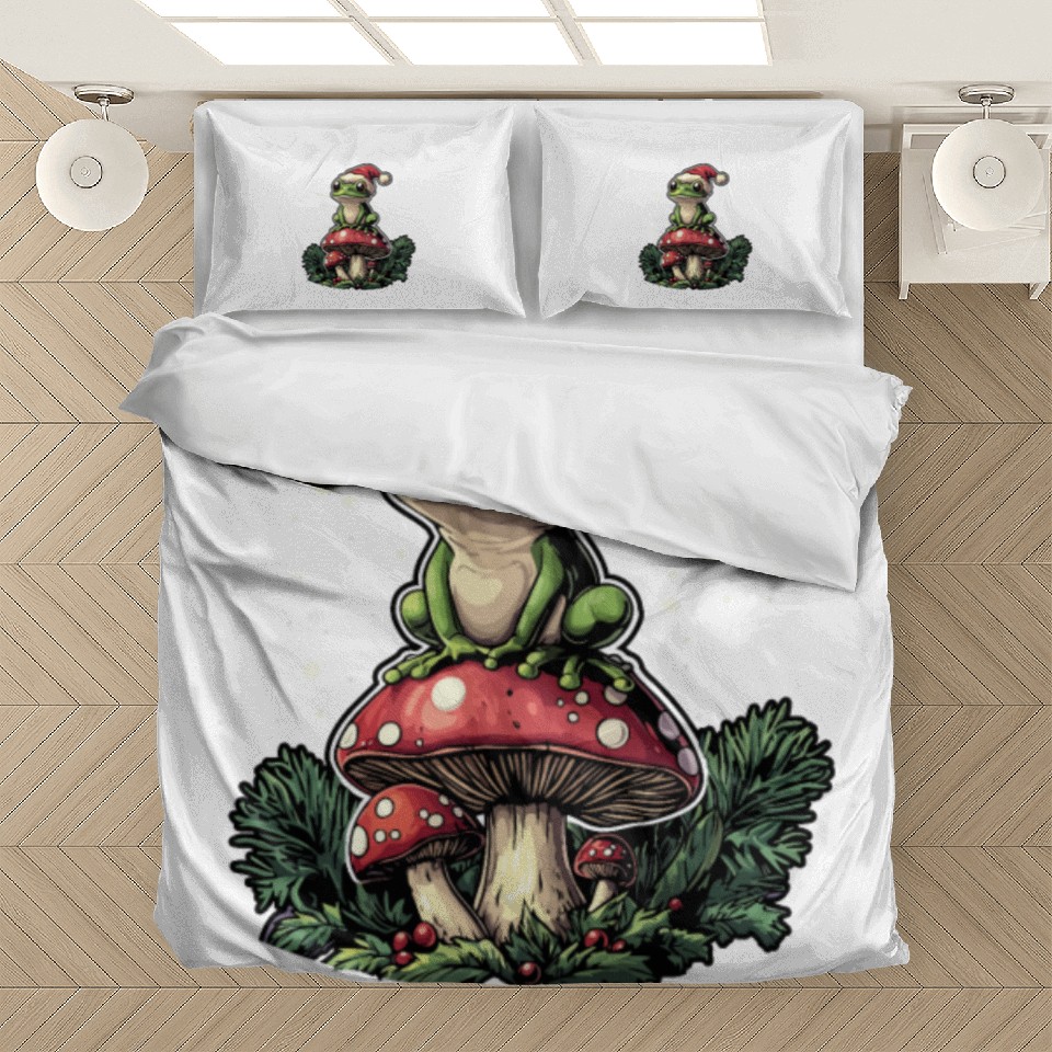 Shop for attractive Under the Mistletoad Frog on Mushroom Cottagecore Bedding Sets or see more Bedding Sets products on https://printblur.com right now!