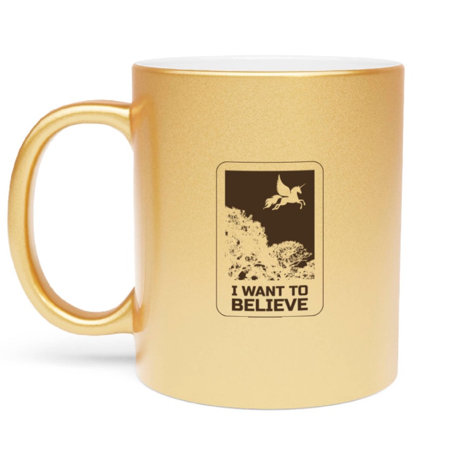 You're taking a peek at the product Unicorn "I Want To Believe" UAP Outfit Alien Ufo Metallic Mugs For Gold belong theme Metallic Mugs at Printblur