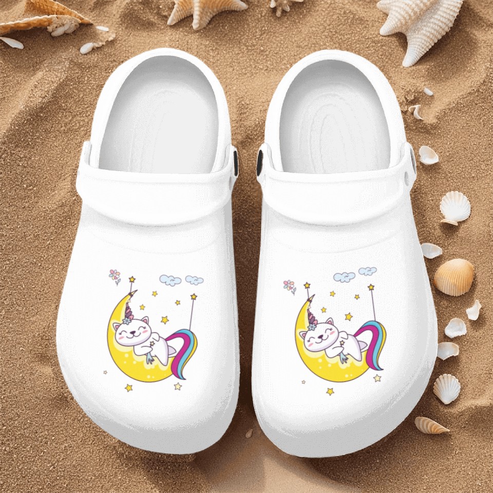 Shop for attractive Unicorn pony cat on the moon, magic sleeping time Nurse Clogs or see more Nurse Clogs products on https://printblur.com right now!