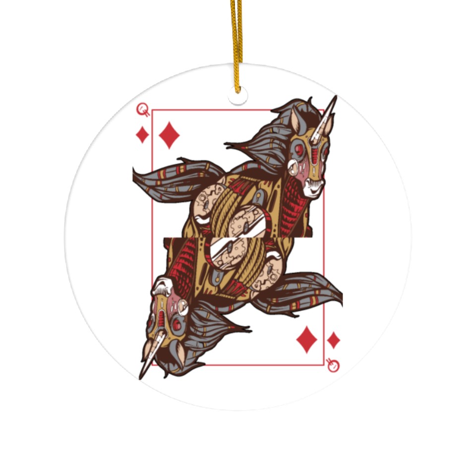 You're searching for a one-of-a-kind product Unicorn steampunk card game Queen of Diamonds Poke Ceramic Ornaments For WHITE belong theme Ceramic Ornaments at Printblur