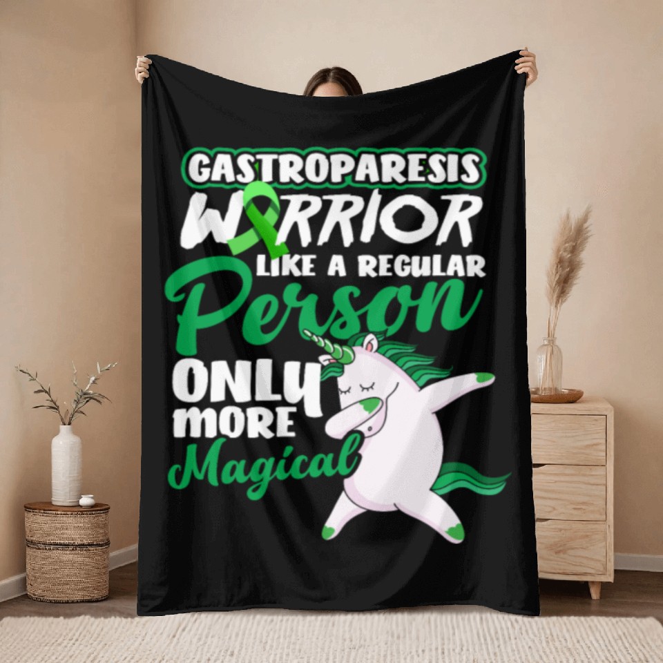 Buy eye-catching Unicorn Warrior Magical Gastroparesis Awareness Throw Blankets or see more Throw Blankets products at Printblur shop now to explore many surprises from our shop!