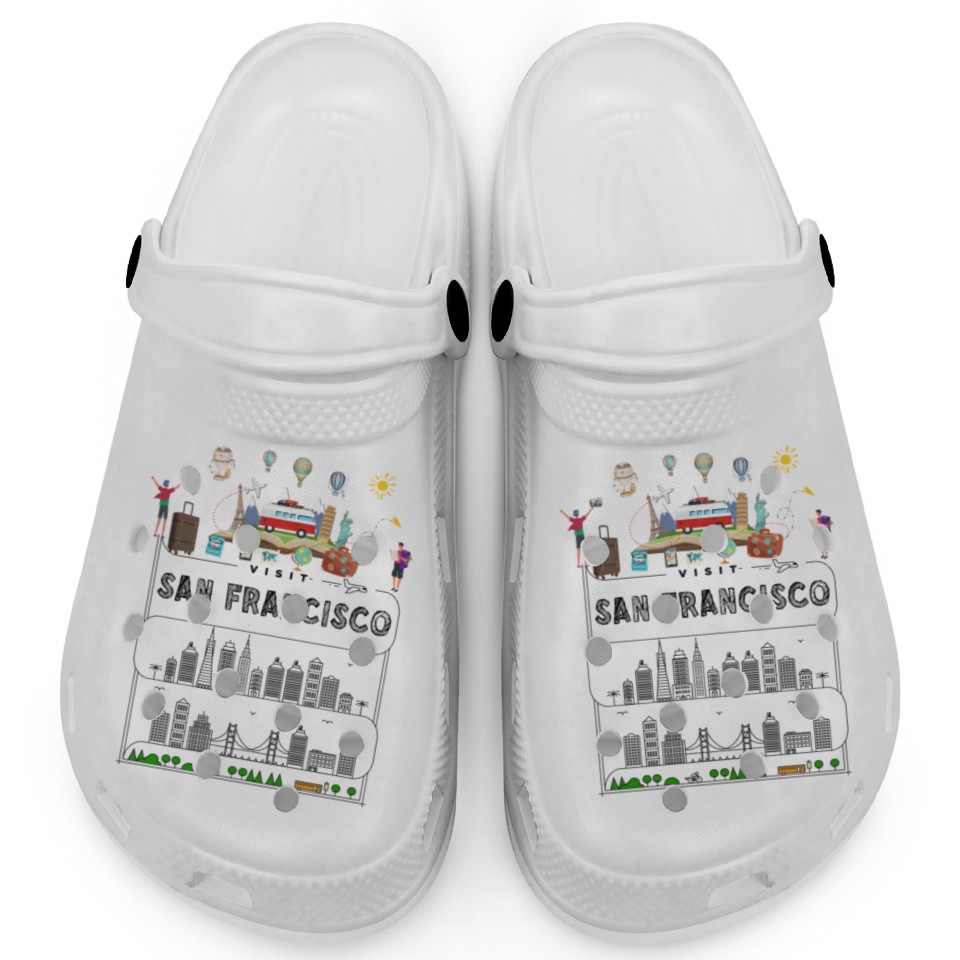 You're looking at the eye-catching product Unique San Francisco USA Travel Guide City Map Clogs For Kids WHITE belong theme Clogs at Printblur