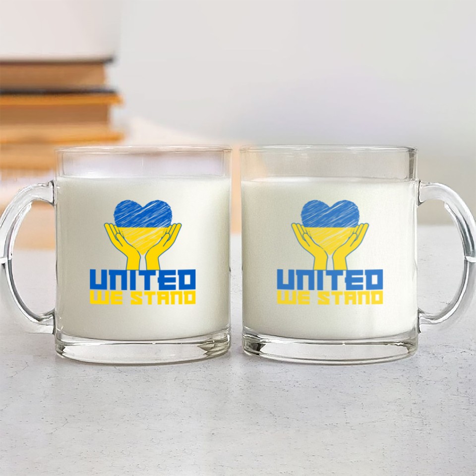 You're taking a peek at the product United we stand! US Solidarity for Ukraine Glass Mugs For belong theme Glass Mugs at Printblur