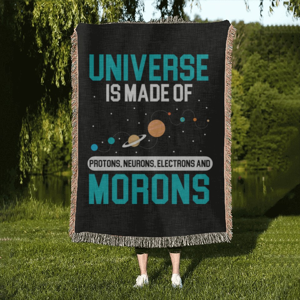 Shop for impressive Universe Is Made Of Morons Outerspace Astronomy Woven Blankets or see more Woven Blankets products right now on Printblur to enjoy your happiness!