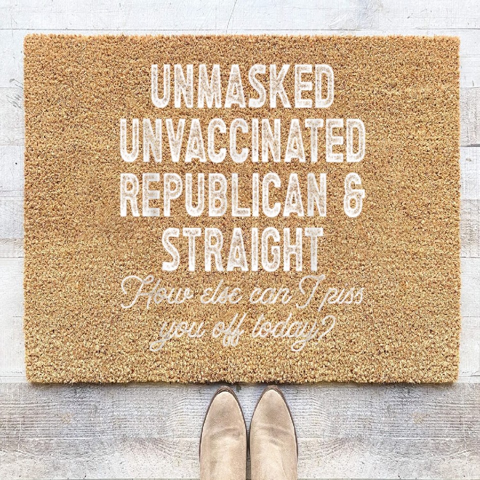 You're searching for a one-of-a-kind product Unmasked Unvaccinated Republican Straight Funny Coir Doormats For belong theme Coir Doormats at Printblur