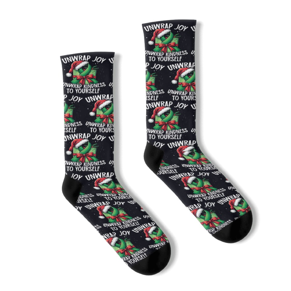 Buy eye-catching Unwrap Joy kindness to yourself Mental Health Socks or see more Socks products at Printblur shop now to explore many surprises from our shop!