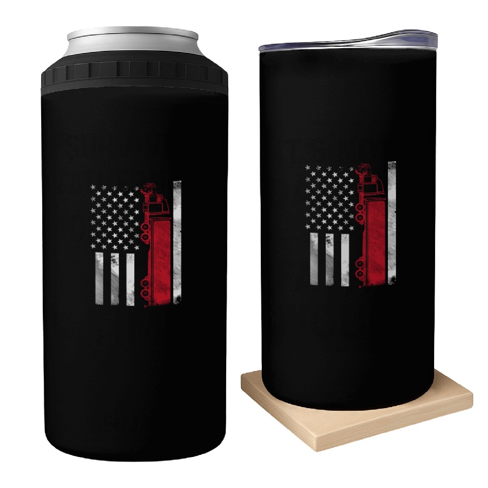 US American Flag Semi Truck Driver 18 Wheeler Can Coolers