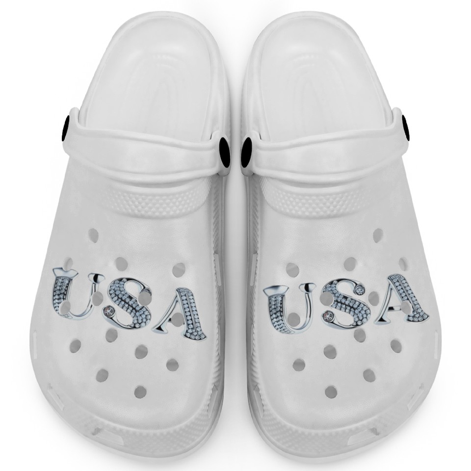 You are viewing one of the trendiest products USA National American Flag 4th Of July Clogs For Kids WHITE belong theme Clogs at Printblur