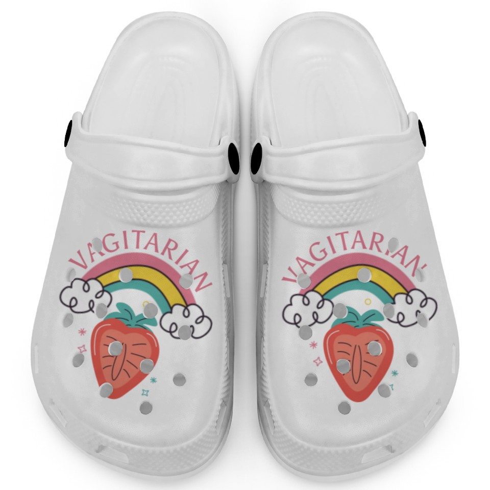 Buy eye-catching Vagitarian - Lesbians Humor Quote - Funny Vegan Clogs or see more Clogs products at Printblur shop now to explore many surprises from our shop!