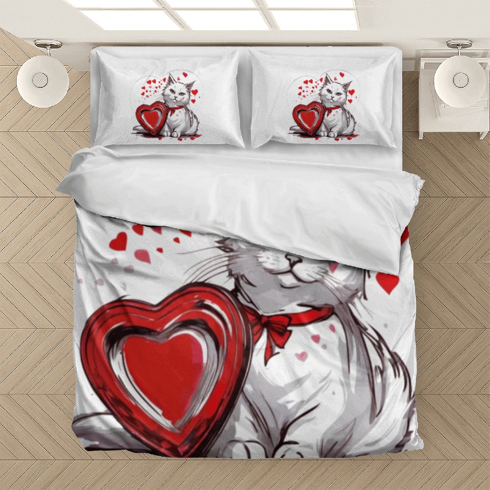 Shop for attractive Valentines Day White Cat With Red Heart Box Bedding Sets or see more Bedding Sets products on https://printblur.com right now!